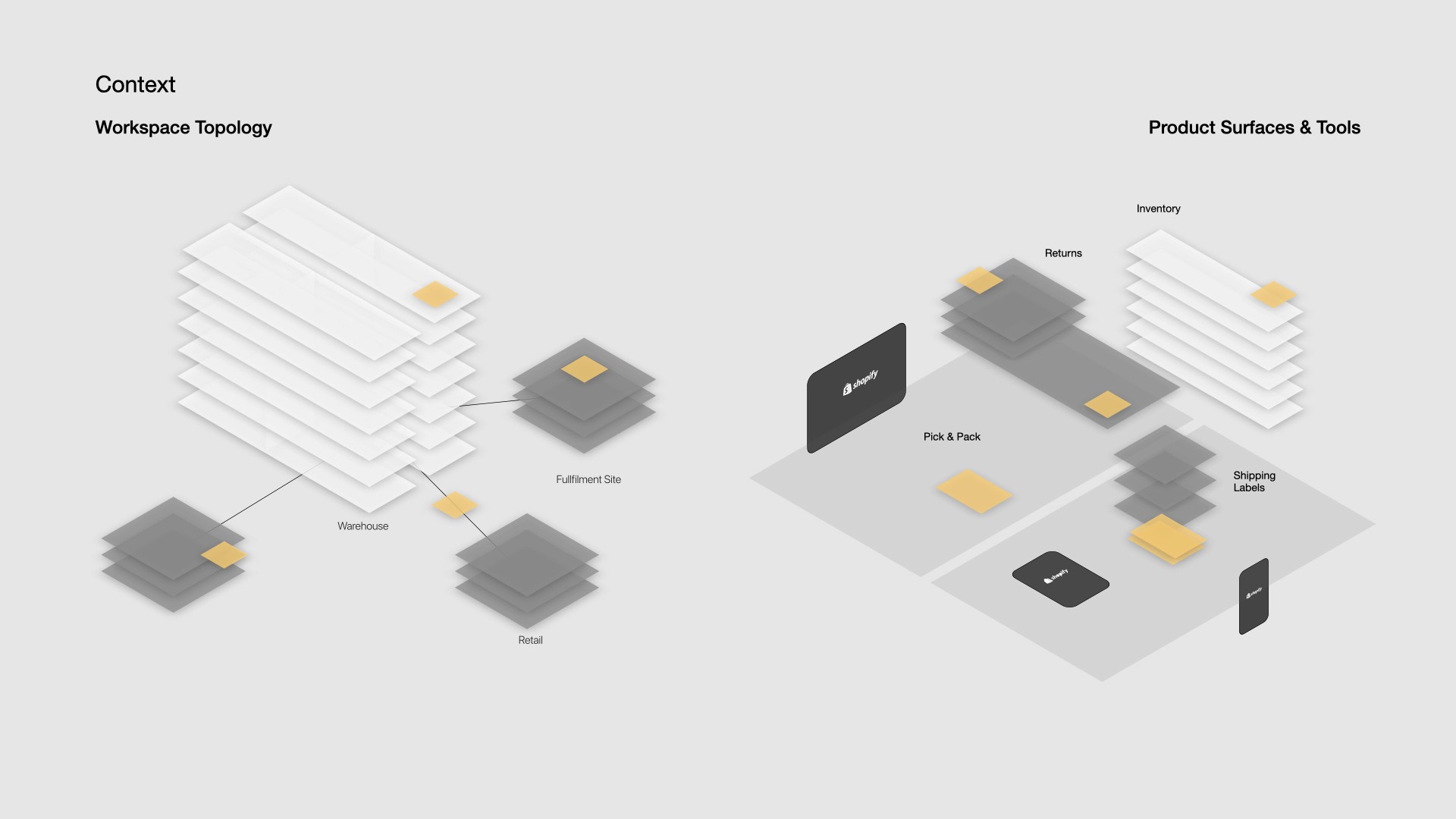 The through-line of this engagement isn't any single artifact. It's a way of working: research as a source of invention, not just validation. The packing workflow gap didn't come from a brief — it came from watching how merchants actually operated. Point of Pack came from that. Green-pathing came from the same instinct applied to the software side: what are merchants actually doing, versus what the product assumes they're doing?